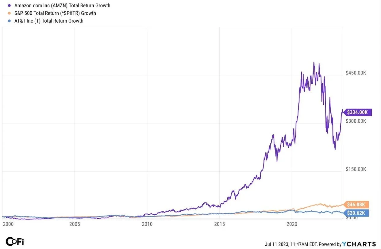 Yes, if you’d invested $10k in AMZN on January 1st, 2000, and rode it regardless of the highs and lows, it would be worth $334,000 today. But it also would have been worth north of $450,000 a couple of years ago. Would you have sold it then? Would you have held on because it had always proven to be a winner before then? Or would you have sold it once that investment dipped below $300,000 last year, for fear of losing it all? Because the opposite can always happen, and sometimes to companies universally beloved and proven to be winners.