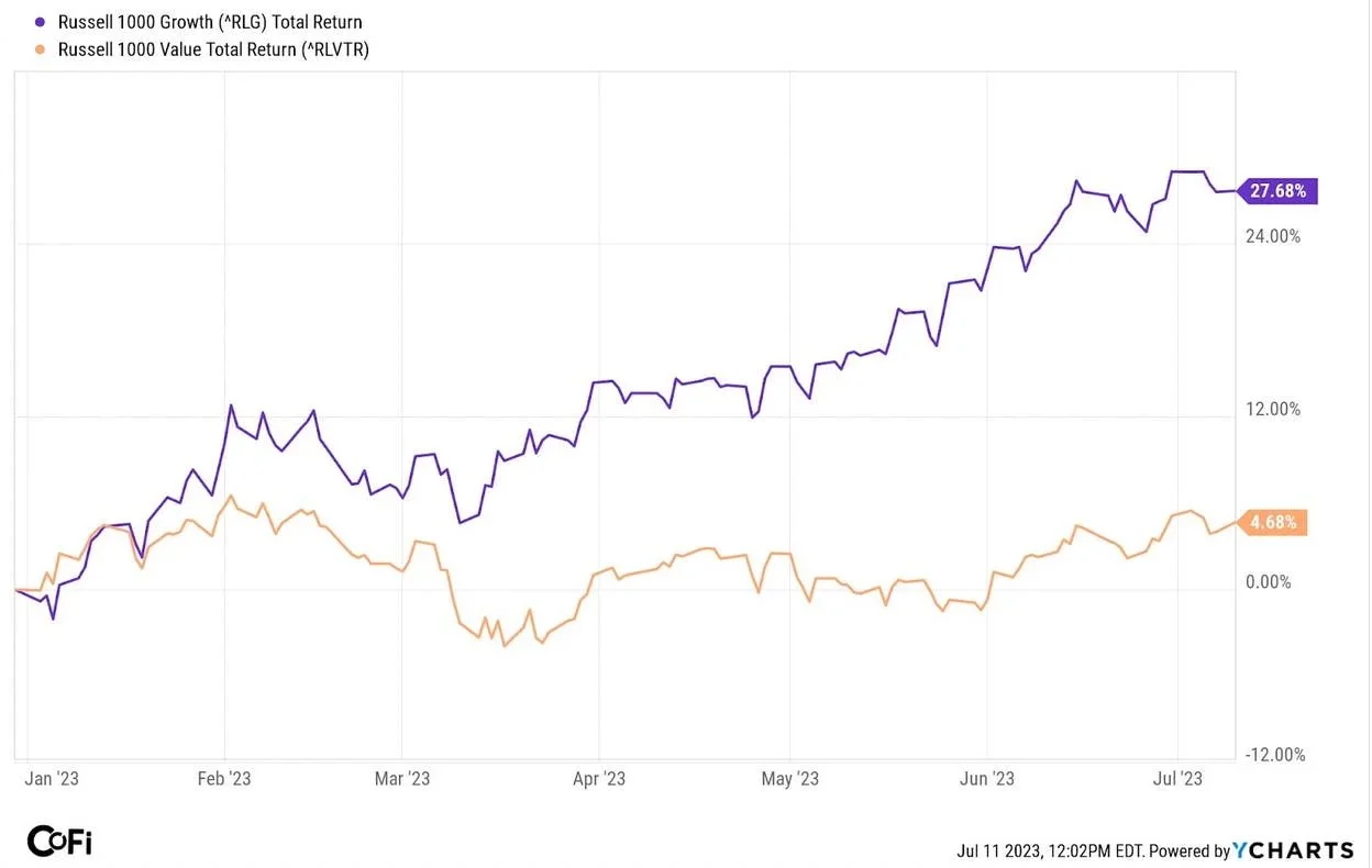 Growth stocks up 27% YTD, Value stocks up… 5%. But hey, at least we’re up.